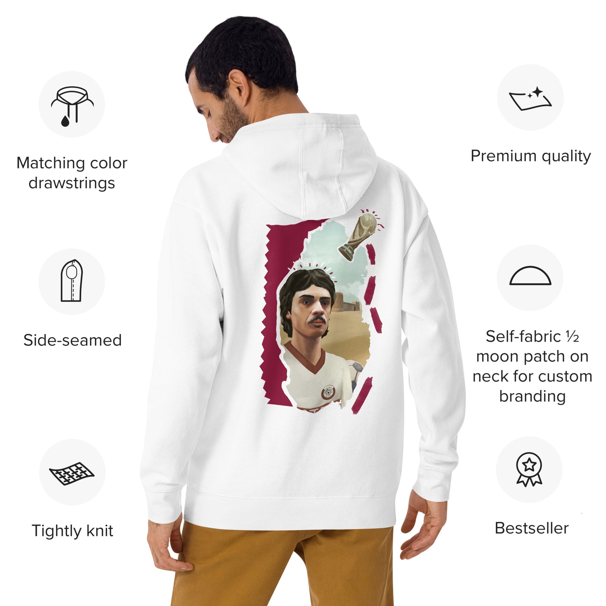 Who knew that the softest hoodie you'll ever own can also be the perfect way to cheer on Qatar during the 2022 World Cup. You won't regret buying this classic streetwear piece of apparel with a convenient pouch pocket and warm hood for chilly evenings.