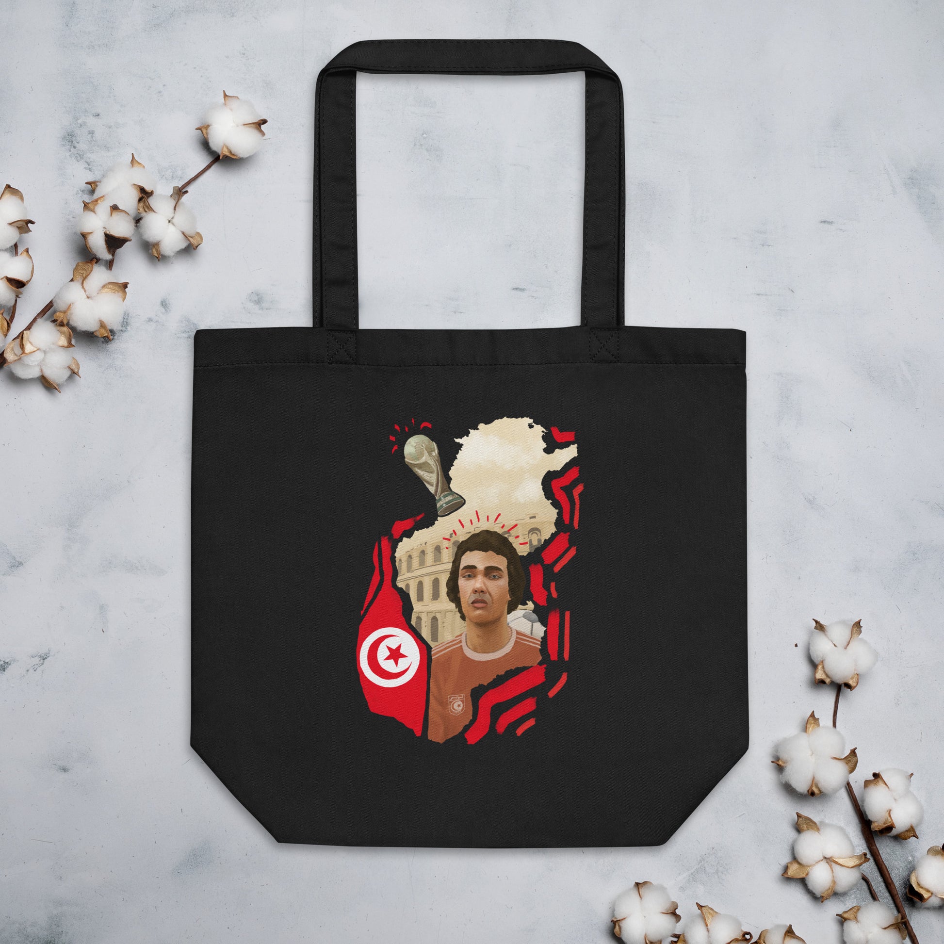 Represent the Tunisian team during the 2022 World Cup with this organic cotton tote bag. There’s more than enough room for groceries, books, and anything in between.